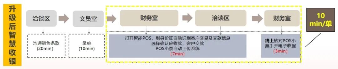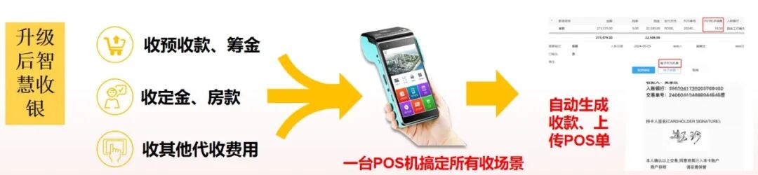 智能POS机的引入,有效解决了传统案场手工录入实收款、手动录入预约排号、一个案场多台POS机进行人工收款等问题,通过一台智能POS机全部搞定认筹、锁客、收款等工作。有效推进财务收款单笔业务效率提升,减少客户等待时长。