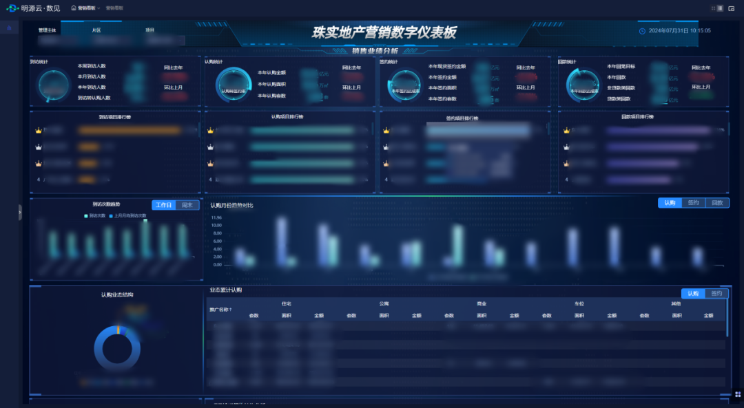 数字营销体系升级是推动业务发展的新动力,数据则是赋能决策的关键。截至目前,珠实地产已完成营销业务报表指标的全面梳理,历经3个月的数据治理,已基本完成历史数据的全部核对完成,并通过数据可视化看板,直接呈现25大类关键指标,将不同维度的数据进行分析,支持多维度对比和深入挖掘,帮助管理者掌握业务细节和趋势变化,支持日常的管理经营分析,为决策提供有力的数据支持。