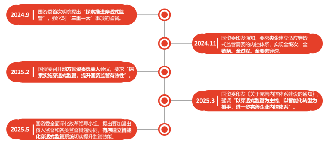 2024年9月,国资委首次明确提出“探索推进穿透式监管”,标志着国资监管进入“全级次、全链条、全过程、全要素”的新阶段。穿透式监管,本质是通过技术与制度的结合,实现对国企各级主体、各项业务、各个环节的“看得清、管得住”。助力国央企打造可知、可见、可控的资产管理体系,点击了解
