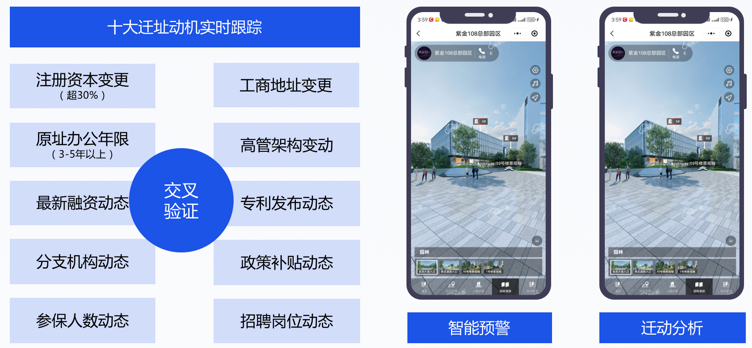 第四,针对「十大迁址动机」,利用爬虫搜索到客户最新动态,第一时间发现合作机会。