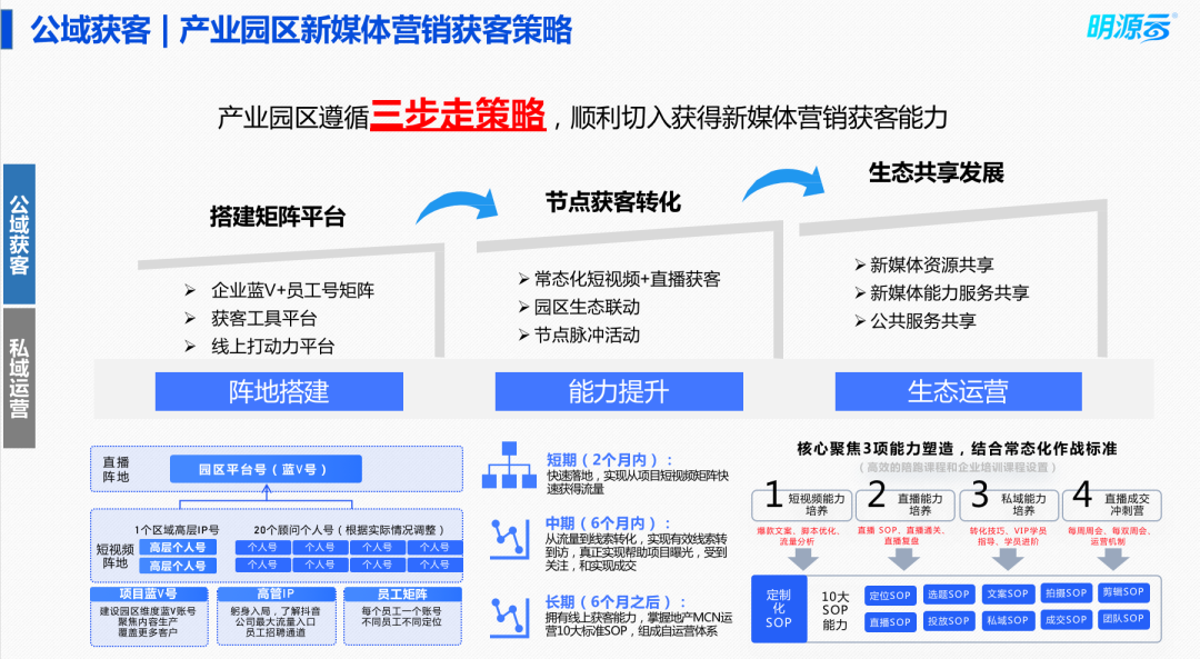 一批优秀的公司,像中关村、中集产城等等都开始把短视频和直播作为招商获客的重要工具,通过三步走,实现新媒体营销获客