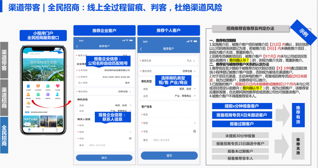 在这个环节,明源云花了近半年时间去反复验证,最终得出一个非常关键的工具——在线招商门户。点我了解,智慧园区数智招商方案